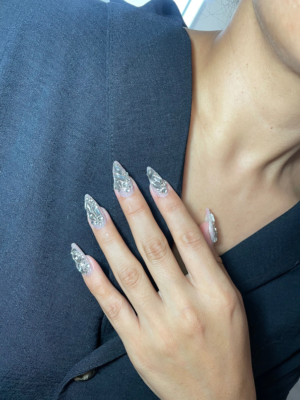Extensiones artificiales de uñas que se utilizan para alargar y dar un aspecto estilizado a las uñas naturales